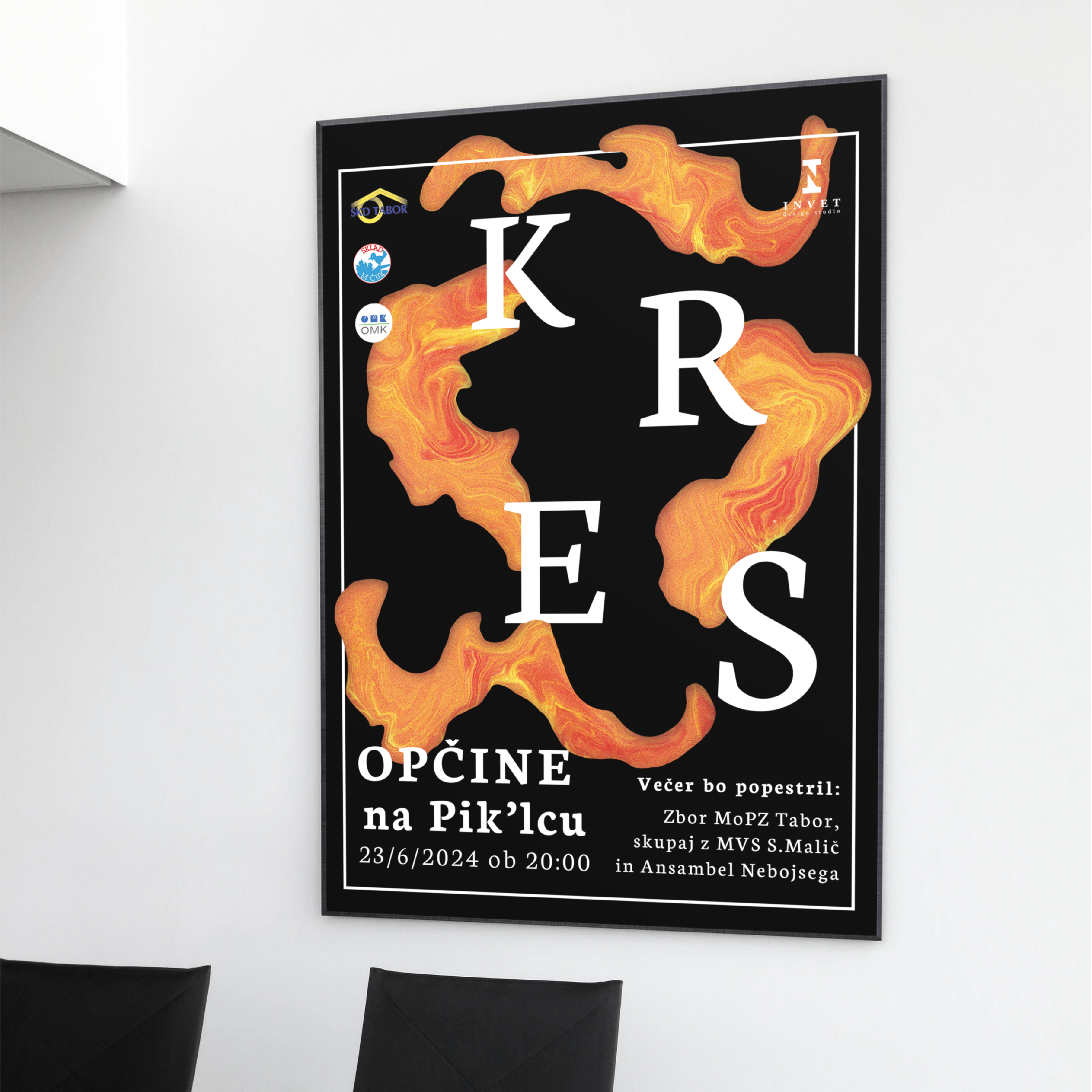 Il poster è stato realizzato per promuovere un evento, diventato ormai tradizione da generazione in generazione. Lo sfondo nero rappresenta l’orario in cui l’evento prende vita, cioè quello serale. Quest’ultimo inoltre enfatizza le fiamme, rappresentate dalle forme astratte arancioni.