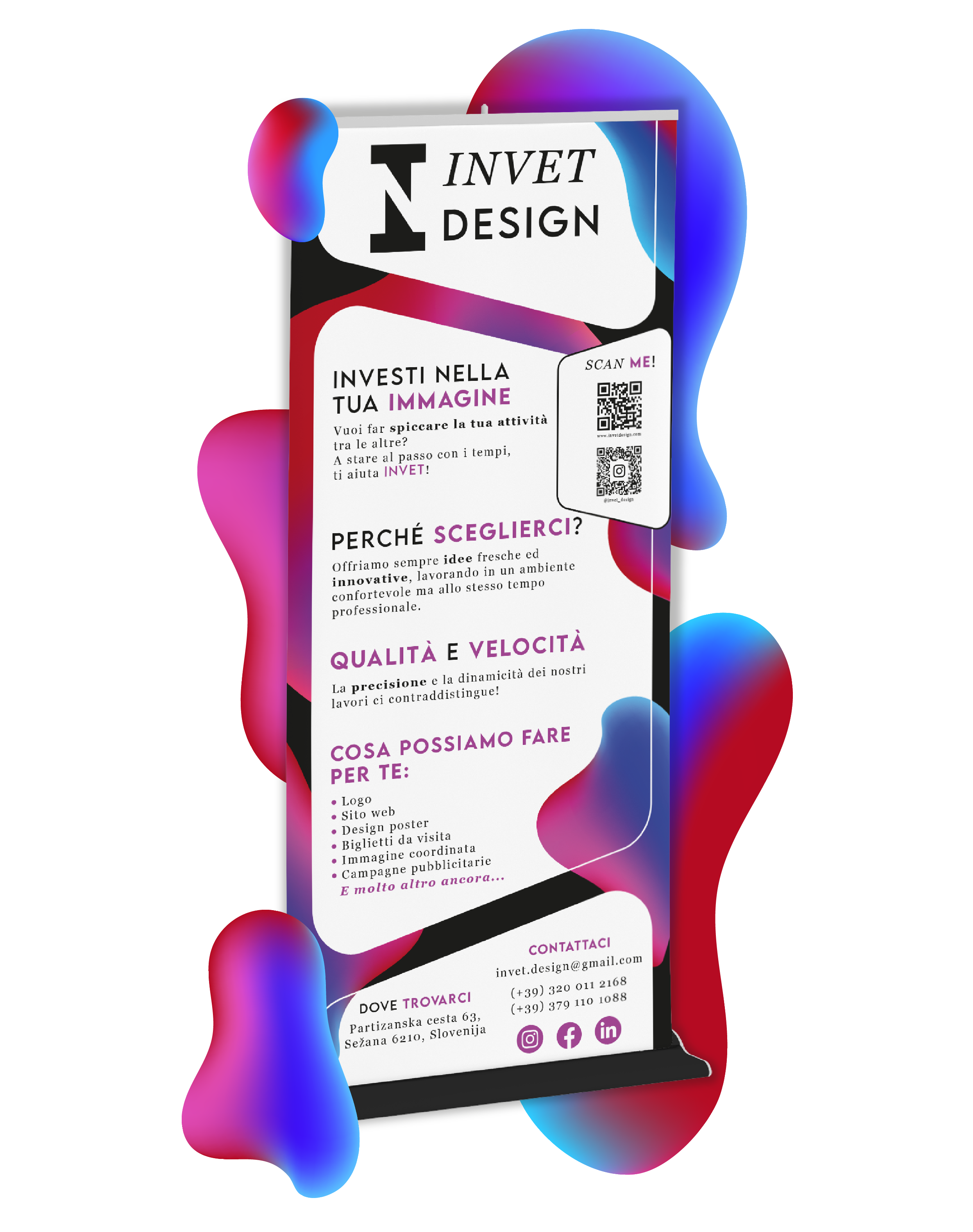 L’azienda INVET, è un azienda neonata di grafica e comunicazione. Il logo deve la sua forma, alle iniziali dei due fondatori (Ivan e Nikolaj), che unite con una tecnica che sfrutta lo spazio grafico negativo, creano un logo professionale, che rispecchia i valori dell’azienda. La caratteristica del logo è la facilità di operare su diverse superfici, dal punto di vista cromatico, che evidenzia la flessibilità dell’azienda.