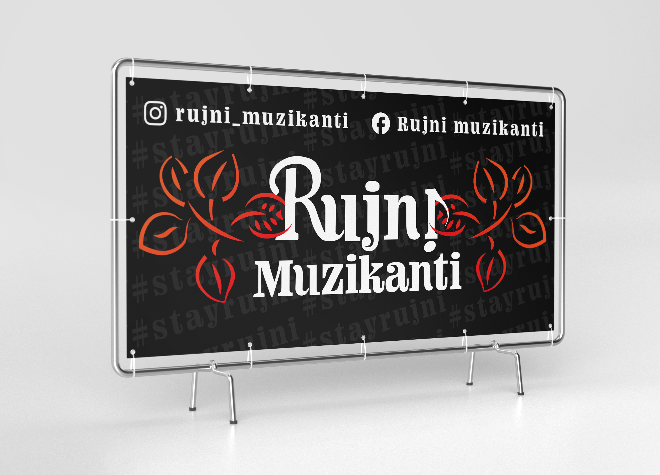 Per il gruppo Rujni Muzikanti, abbiamo avviato come prima iniziativa la creazione di T-shirt da inserire nel loro merchandising. Una volta completato questo primo lavoro, abbiamo collaborato alla realizzazione di un telo microforato 4×2 metri, pensato per servire da retropalco durante i loro concerti. L’ultima collaborazione riguarda un servizio fotografico che avrà un ruolo fondamentale nella visibilità del gruppo musicale, oltre a contribuire alla produzione di materiale pubblicitario come volantini e locandine.